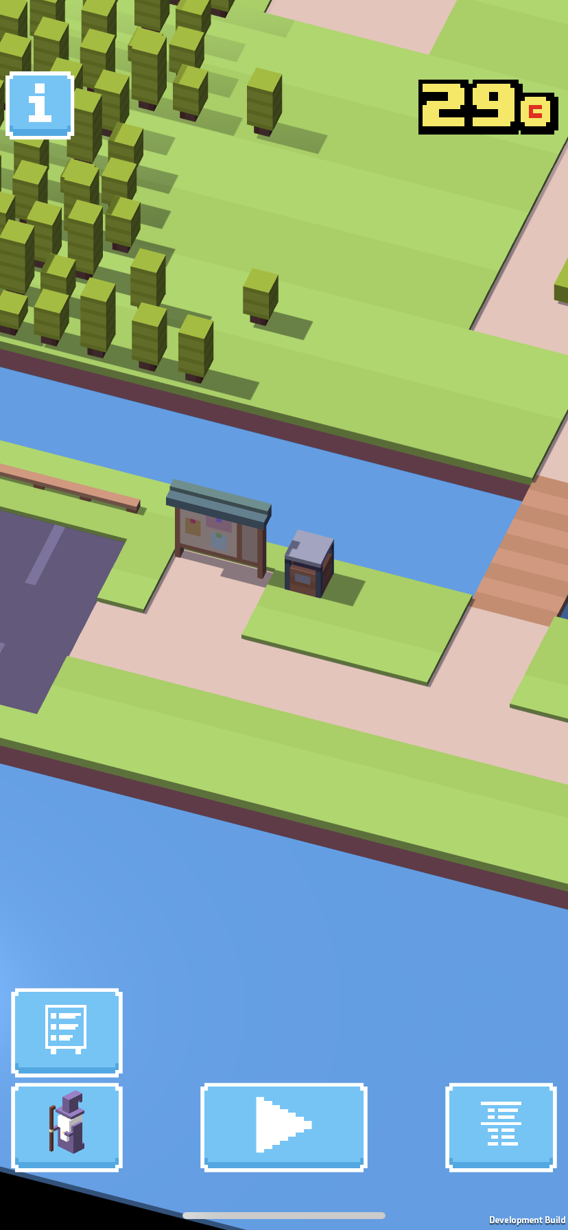 I then mocked up the layouts to match the "Crossy Road" art style, and once approved I turned those mockups into assets to be brought into the game.