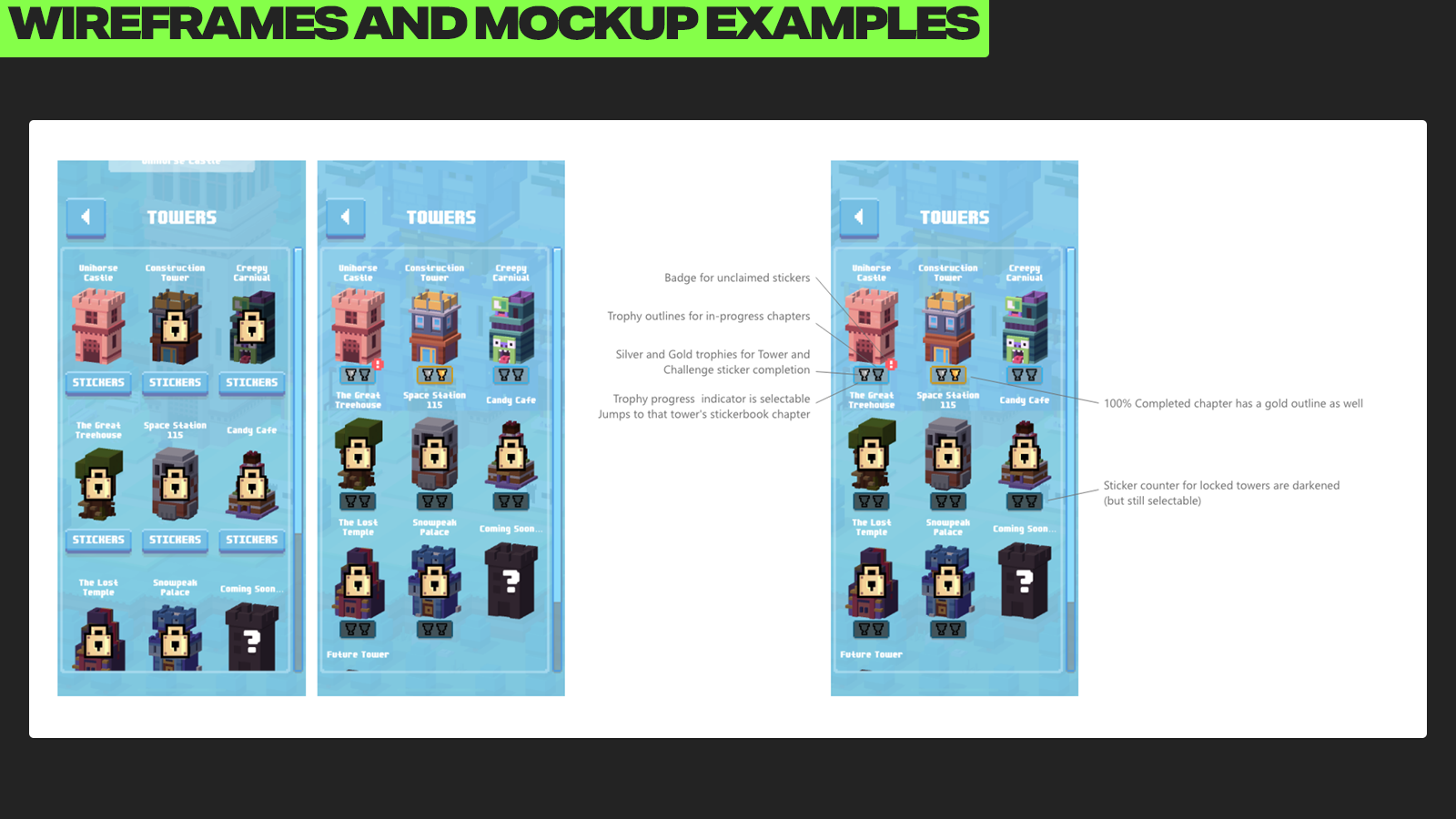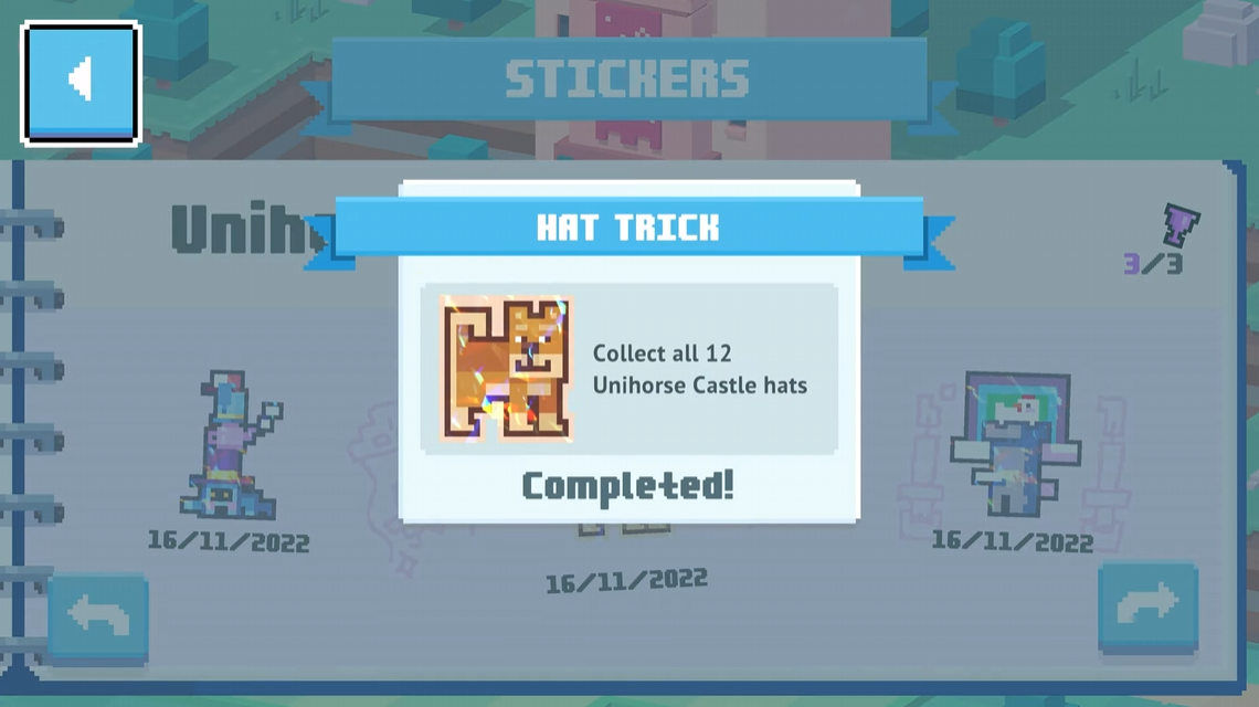 The Sticker Book was a feature we added to "Crossy Road Castle" with the goal of incorporating an achievement-style progression system to the game to extend the game's longevity and give players more to do.