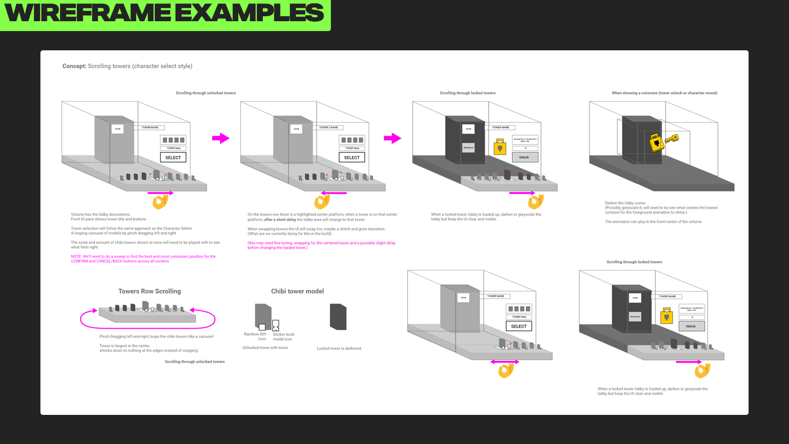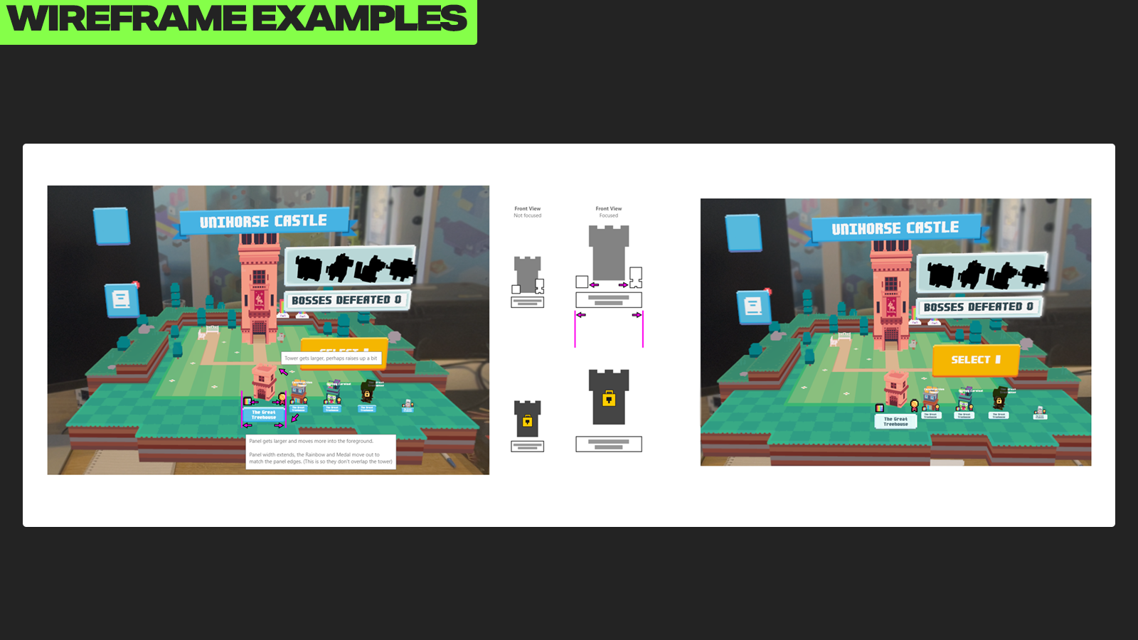 After taking some time familiarizing myself with the Vision Pro's features I went to work producing wireframes and layout mockups to provide new solutions for the main menu, character & tower select screens, as well as the game over/results flow.