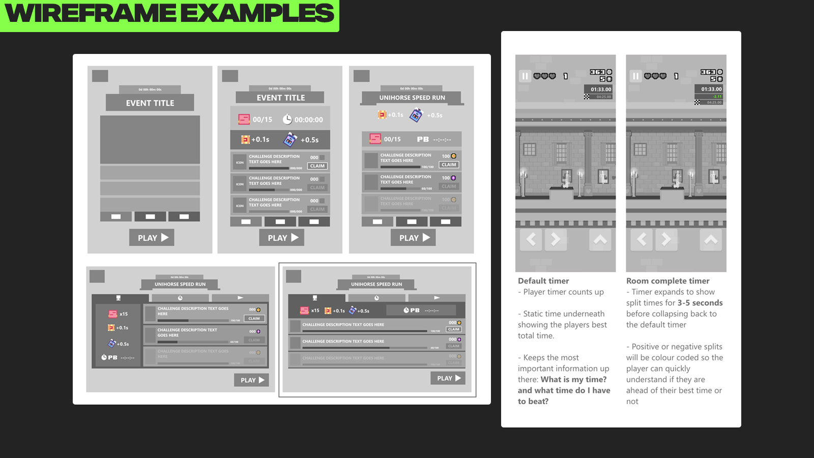 My task was to incorporate a frequently updating "Weekly Challenges" game mode into the existing UI layout, and design a UX flow that would make sense to the player.