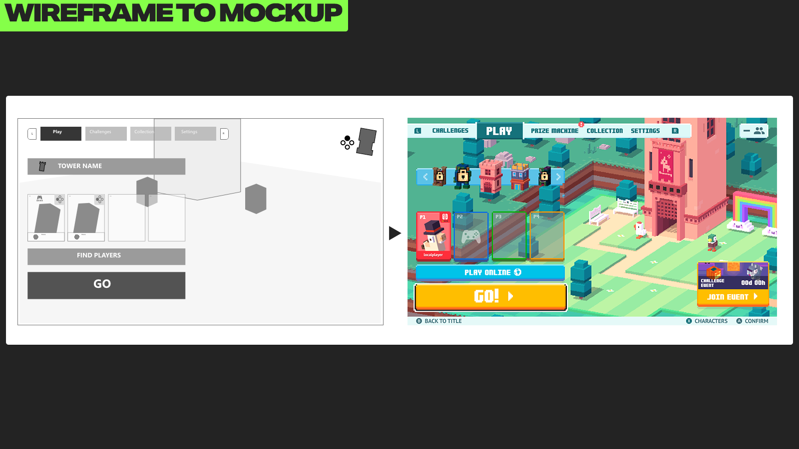 Over the project I worked closely with creative leads, designers and developers to design and iterate on wireframes, mockups and assets to translate a mobile-first experience into one that felt more natural on consoles.