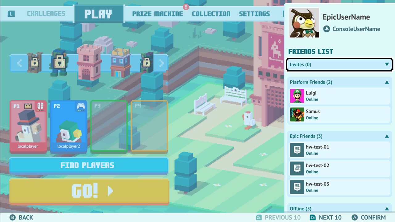 In 2024 while at Hipster Whale we developed a port of "Crossy Road Castle" for consoles (PS5, Xbox Series S and X, and Switch). Our goal was to release the console version as a full package, including all the features and updates that had been added to the Apple Arcade version over the last four years as well as a revamped online multiplayer experience (with crossplay included).