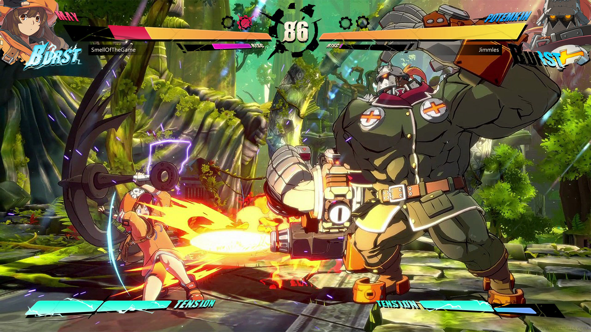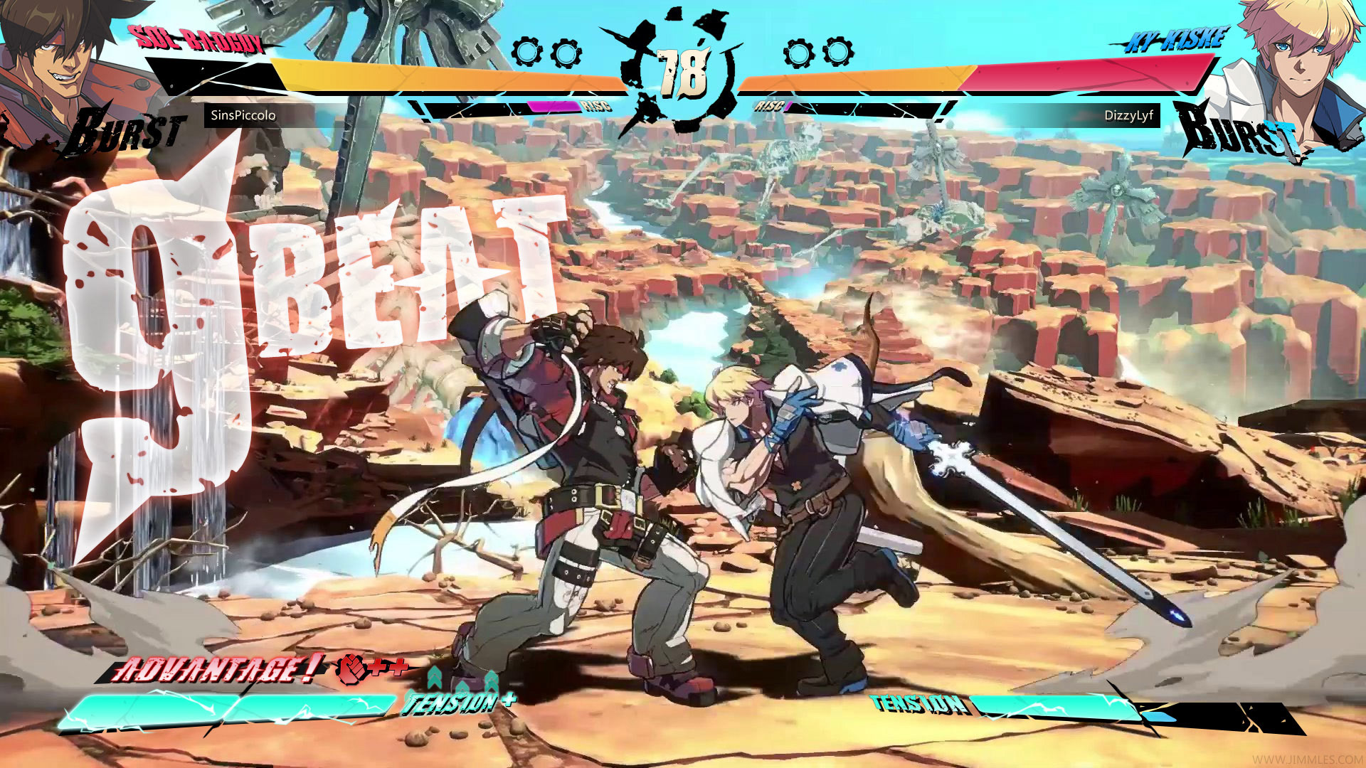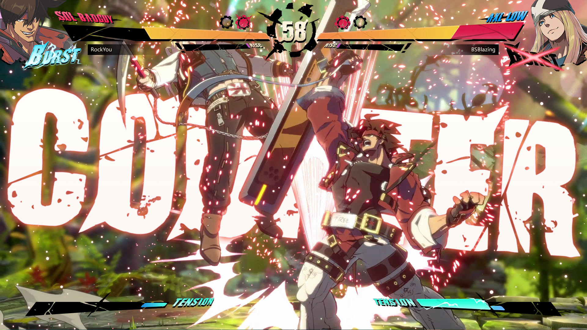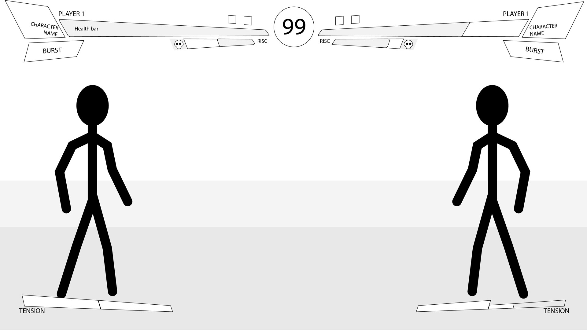 The 'Burst' and 'R!SC' meters are attached to the character profile, as the profile position moves with the health bar the position of the meters are always moving, and thus require a moment for the user to locate in a fight